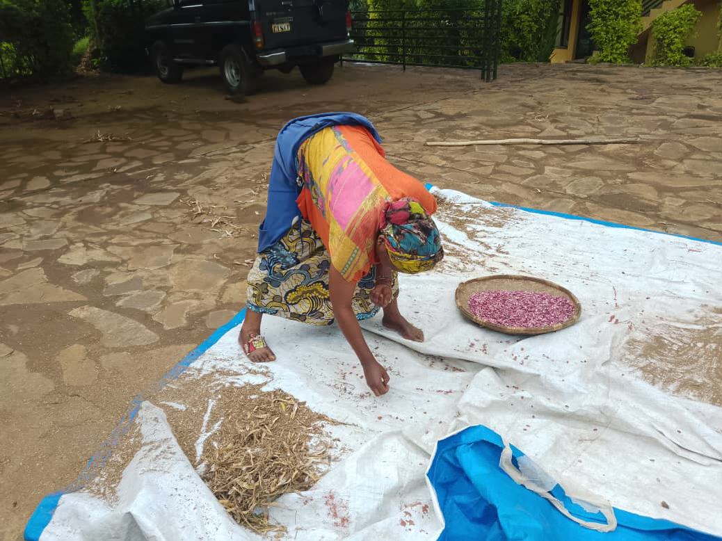 Dieu merci, depuis le 11 janvier, les mères, regroupées au sein de Mutuelle de solidarité (MUSO) sont occupées à récolter les haricots, maïs et tournesols. Les aliments riches en vitamines sont soigneusement séchés et momentanément conservés sous forme de graines en vue de prochaines semailles.
