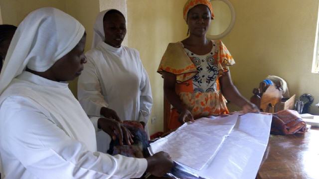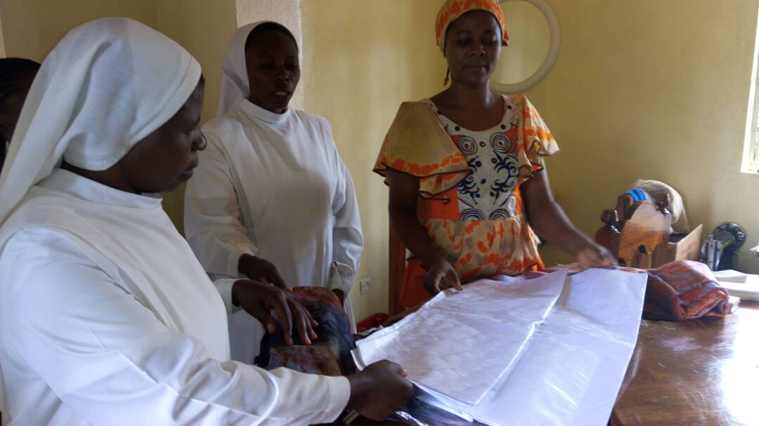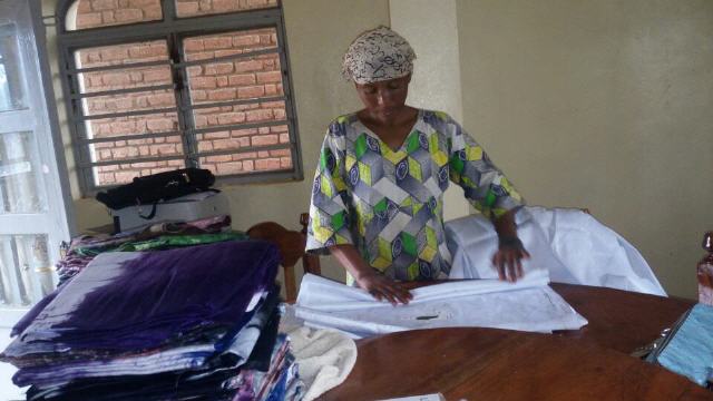 P. Roger a accordé un crédit aux enseignantes qui lui permettait d’acheter un stock de tissu blanc. Dans l’atelier de couture on expertise les tissus avant de les colorer et en suivant de les utiliser pour la coupe et couture.