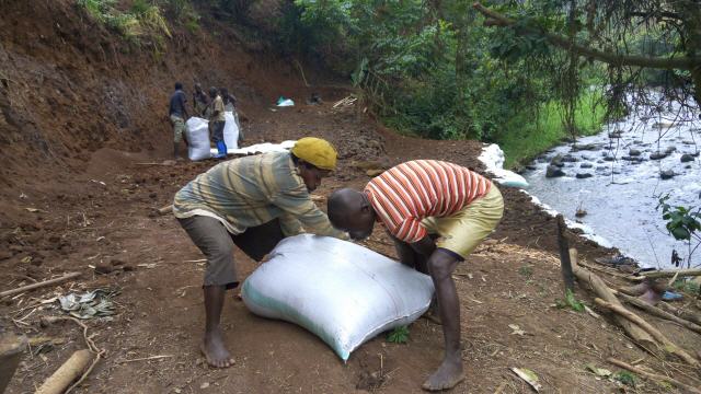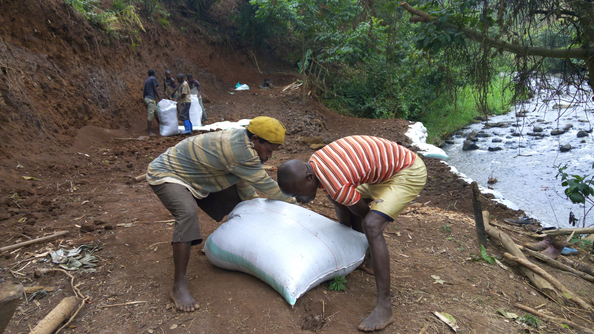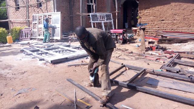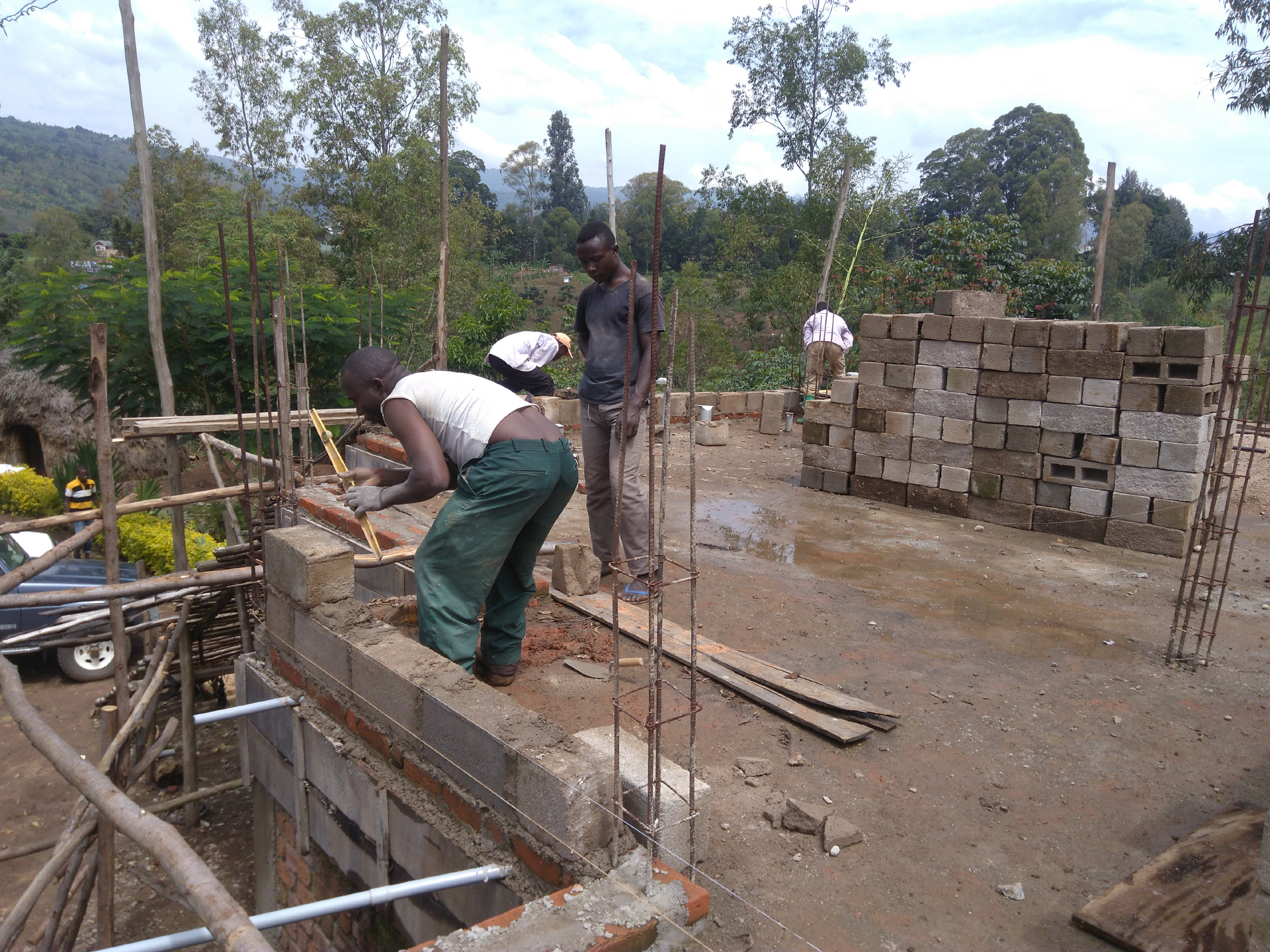 Après leurs brevets, les jeunes, ex-enfants soldats sont à l’œuvre : au chantier de construction d’un centre à Kambehe. Un Centre qui a besoin d’un espace suffisant pour l’atelier de couture et pour d’autres activités interculturelles.