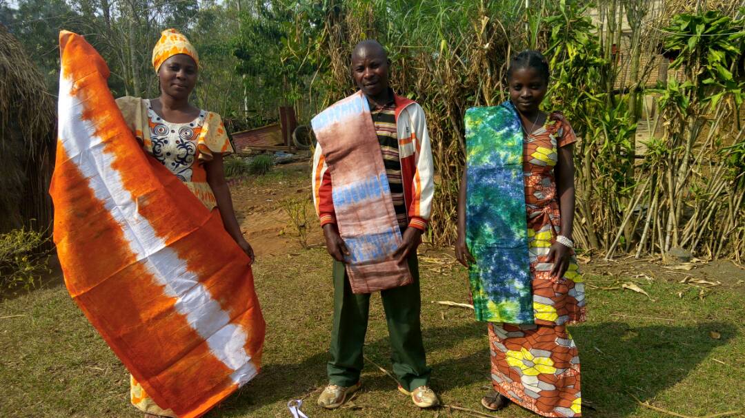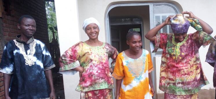 Die Mütter üben sich im Färben und von afrikanischen Farbmustern. Es entstehen farbenfrohe Umschlagtücher, wie alle Frauen sie tragen. Doch die Schneiderinnen unterrichten sie auch im Kleidernähen, als Verkaufsangebote. P. Roger trägt bereits eines der bunten Hemden aus dem «Schneider-Atelier» in Kambehe! Möge ihr Streben nach eigenständigem Arbeiten zu einem Zusatzverdienst führen.