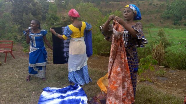 Les mamans expérimentent de colorer les tissus aux couleurs africains. Elles créent des pagnes hauts en couleurs, comme les femmes les favorisent. Ensuite les couturières enseignent les mamans de coudre des vêtements, comme produits à vendre. P. Roger porte déjà une jolie chemise de « l’atelier de couture » à Kambehe ! Que leur aspiration de travailler autonome les aboutisse envers un supplément de revenue !