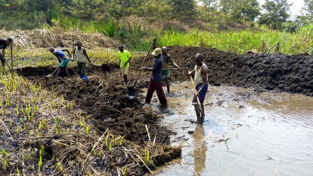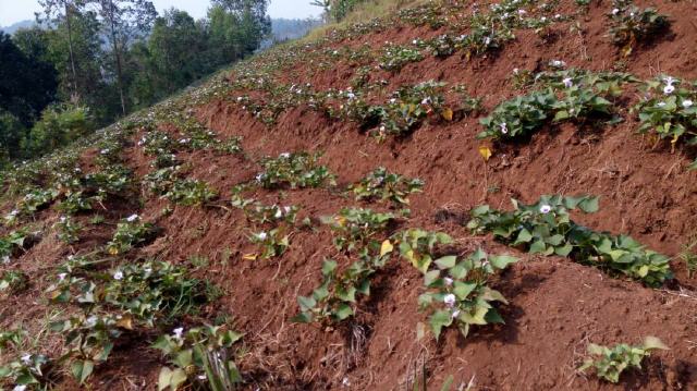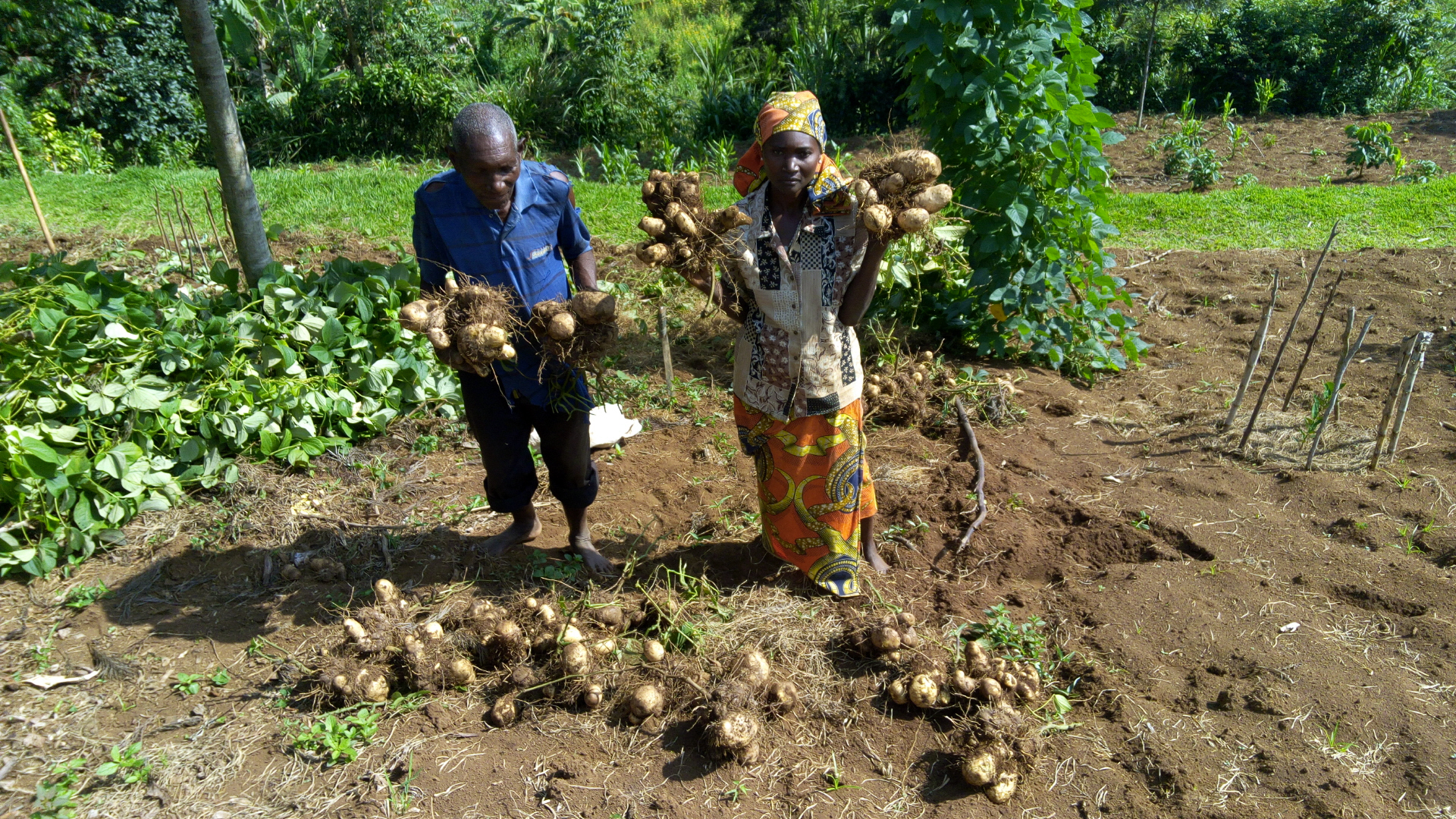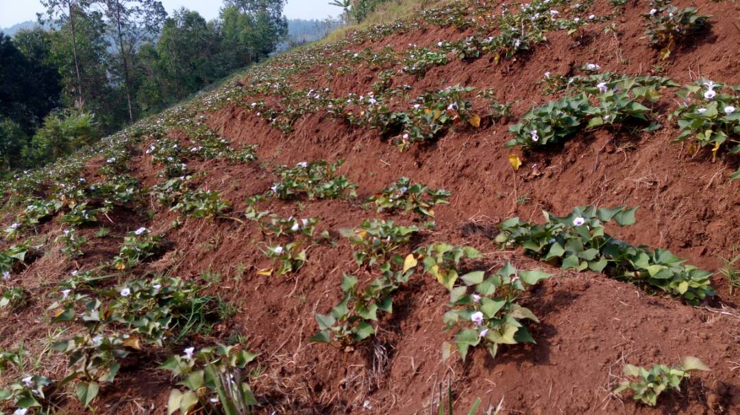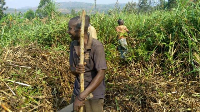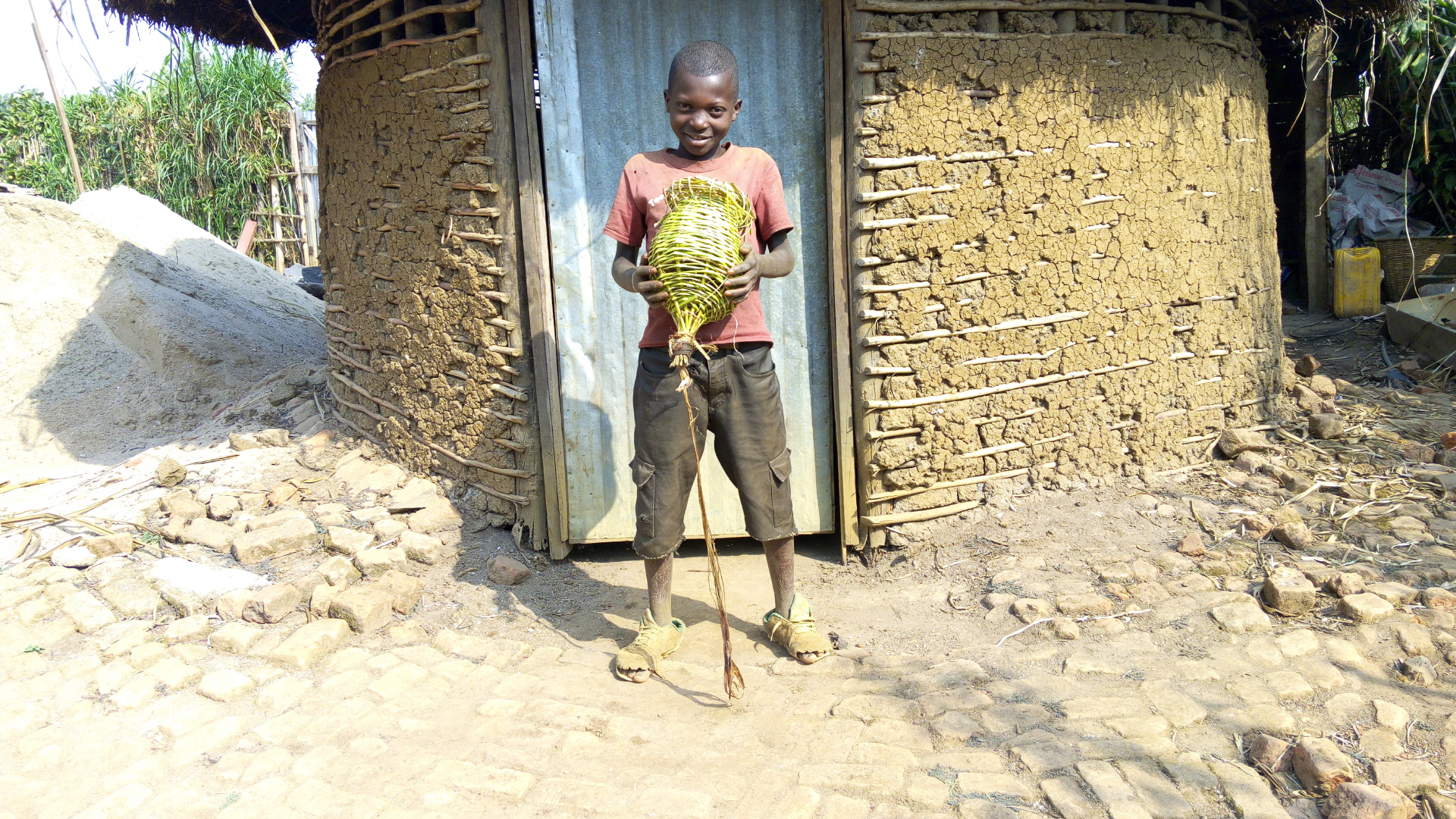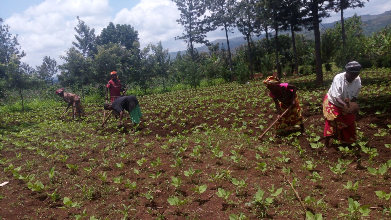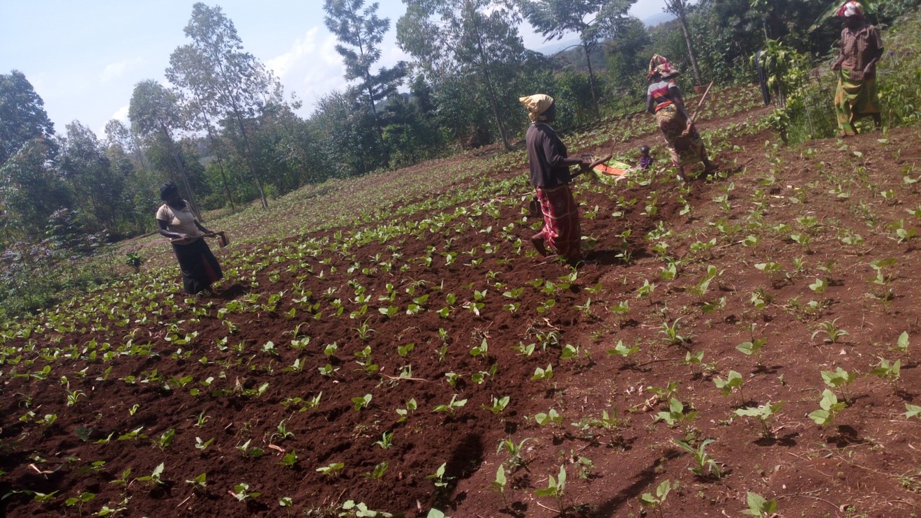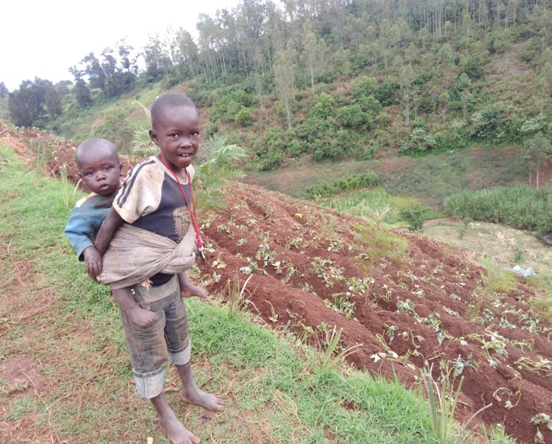 Au moment où sa maman travaille au champ communautaire, IRAGI fait un tour dans l’espace récréatif devenu un champ des patates douces. Il berce son petit frère ! C’est beau !
