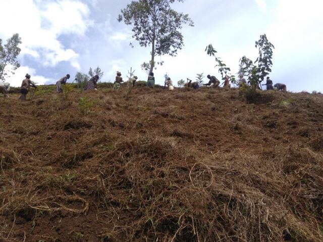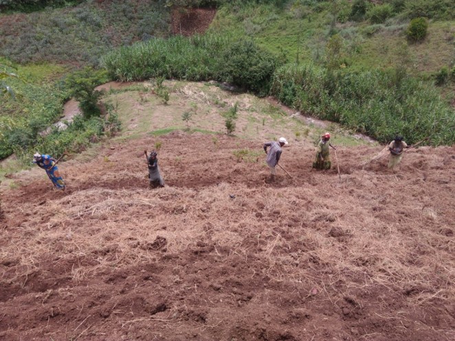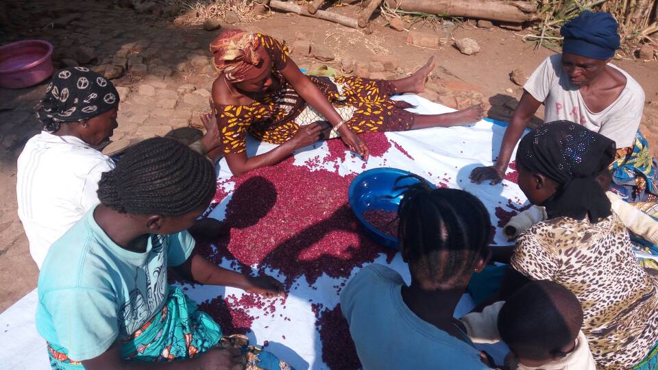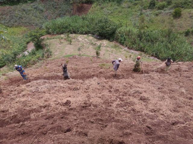Les mamans labourent le grand champ et le fertilisent avec des engrais. Ensuite elles sèment les haricots exactement selon la nouvelle méthode de cultivation. Le sarclage du chantier doit être difficile, mais au début de la saison des pluies les plantes grandissent miraculeusement !