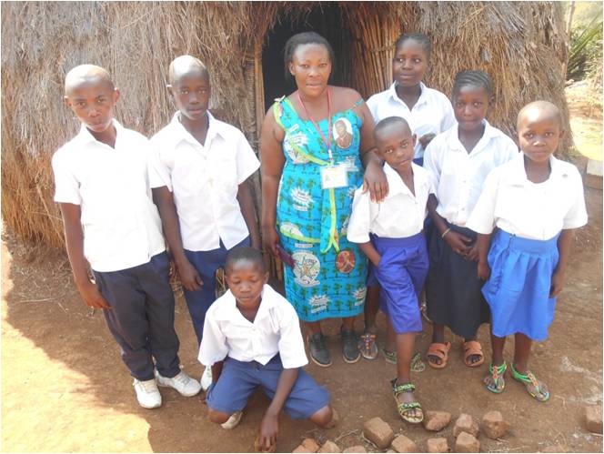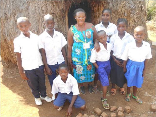 Die Verantwortliche der Müttergruppe und die Verwalterin der Finanzen mit ihren Schulkindern