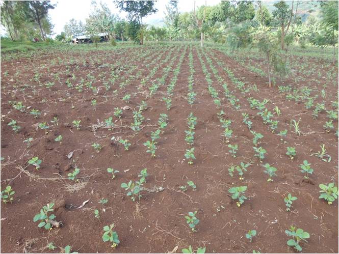 DAS SPRIESSEN DER SOJAPFLANZEN AUF DEM VERSUCHSFELD IN KAMBEHE II