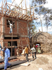 Die 4 Lehrlinge beteiligten sich beim Bau einer traditionellen Hütte in Kambehe. Die Bauweise ist nur noch wenigen Männern bekannt und droht in Vergessenheit zu geraten. Die Hütte ist inzwischen ein beliebter Treffpunkt geworden. Damit die angehenden Maurer, Mechaniker, Schweisser und Schreiner in den Schulferien und nach ihrem Lehrabschluss eine Arbeit haben, ermöglichte ihnen P. Roger ein Haus zu bauen, das als zukünftige Unterkunft dienen wird. Mit Hilfe von Fachleuten sind sie seit Juli 2014 beschäftigt und können wertvolle, praktische Erfahrungen sammeln.