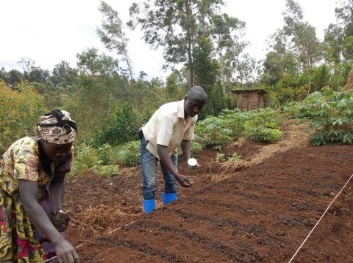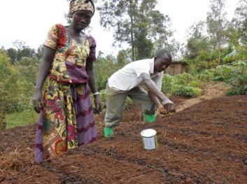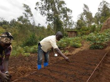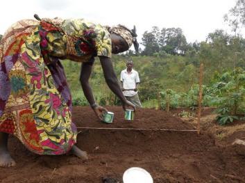 Zusammen mit dem Agronomen werden „Hügelbeete“ erstellt und danach das Saatgut in die feine Erde gesät.