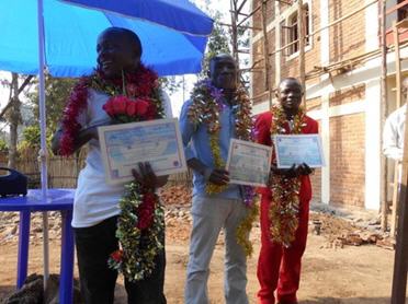 Die Auszeichnung für die Berufslehre als Automechaniker inkl. Schlosser-Anpassungen : herzliche Gratula-tion an Akili Bitelulo Dauphin, Maliyamungu Mirindi John und Minani Kamulete Josue !