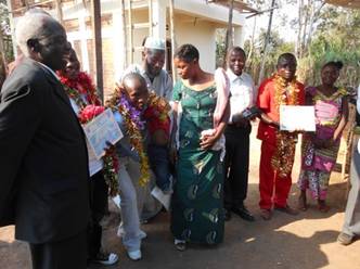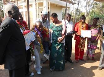 Tag der feierlichen Übergabe der Lehrabschluss-Diplome an die jungen Männer von Bunyakiri in Anwesenheit ihrer Eltern und der Eltern von P. Roger MPONGO, Präsident des FDPGL, in Kambehe am 23. Juli 2015