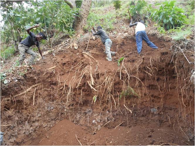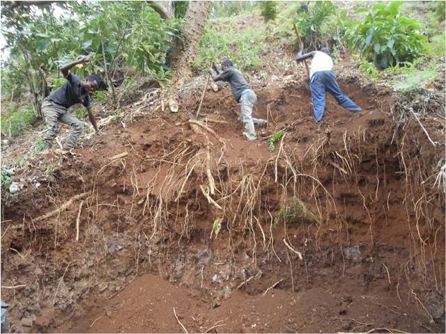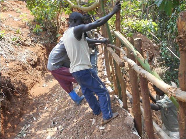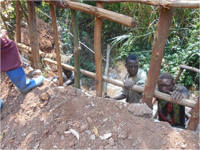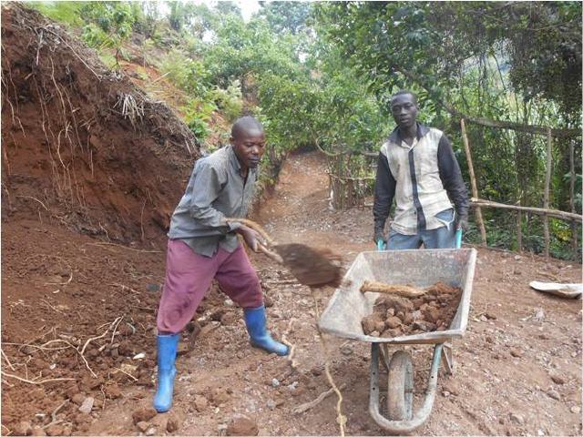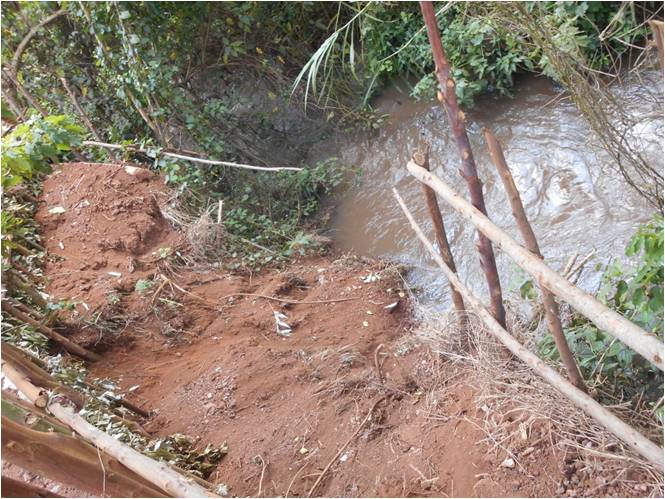 Erdrutsch auf dem Gelände der Erholung in Kambehe II Wir bemühen uns auf dem Gelände der Erholung die Flussufer zu schützen, trotz der Stärke von Erdbeben und des Wassers, welche Erdrutsche verursachen.