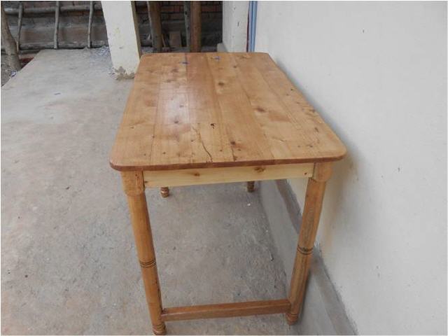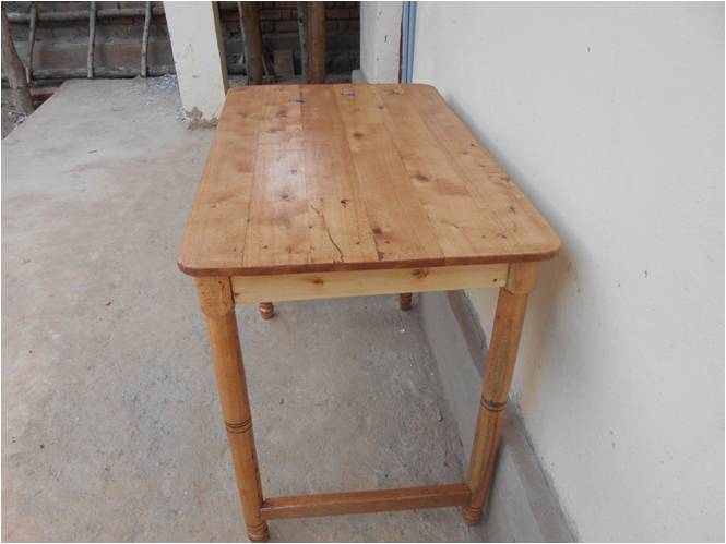 TRAVAIL DE FISTON: EX- ENFANT SOLDAT DEVENU MENUISIER « Petit à petit les œuvres parlent : nous ne sommes plus des guerriers. Notre vision est plutôt orientée vers la construction de la paix et le développement. En témoignent les travaux de nos propres mains et de tout ce que nous apprenons chaque jour à l’Ecole de vie. Nous apprenons tant de choses maintenant qui, tôt ou tard, changeront notre situation économique, sociale et culturelle », déclare Fiston, ex-enfant soldat devenu menuisier, Ces tables serviront pour l’atelier de coupe et couture à KAMBEHE.